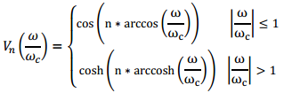 式中:n為濾波器的階數,為濾波器的截止頻率,為與波紋有關的參量,大,波紋大,為切比雪夫多項式:
