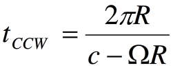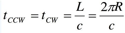 如圖(a)所示,在無旋轉條件下,兩束光傳輸時間相等為
