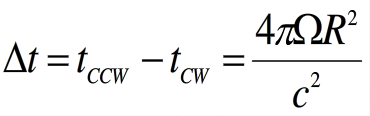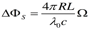 理想條件下,環形光路系統中的Sagnac效應如上圖所示。一束光經分束器M進入同一光學回路中,分成完全相同的兩束光Ccw和Cccw,分別沿著順時針方向(CW)和逆時針方向(CCW)相向傳播,當回路繞垂直于自身的軸轉動時,將使兩束光產生相位差,該相位差的大小與光回路的旋轉速率成比例。