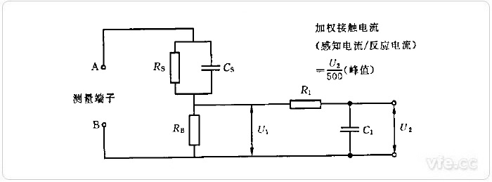 圖1示:加權接觸電流(感知電流或反應電流)測量網絡