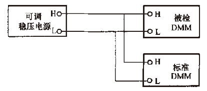 交流標準源法檢定數字多用表交流電壓功能的接線如圖3所示。