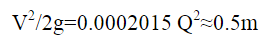 動能損失水頭V2/2g對于不同管徑為流量的函數,不同管徑的數值見表2。