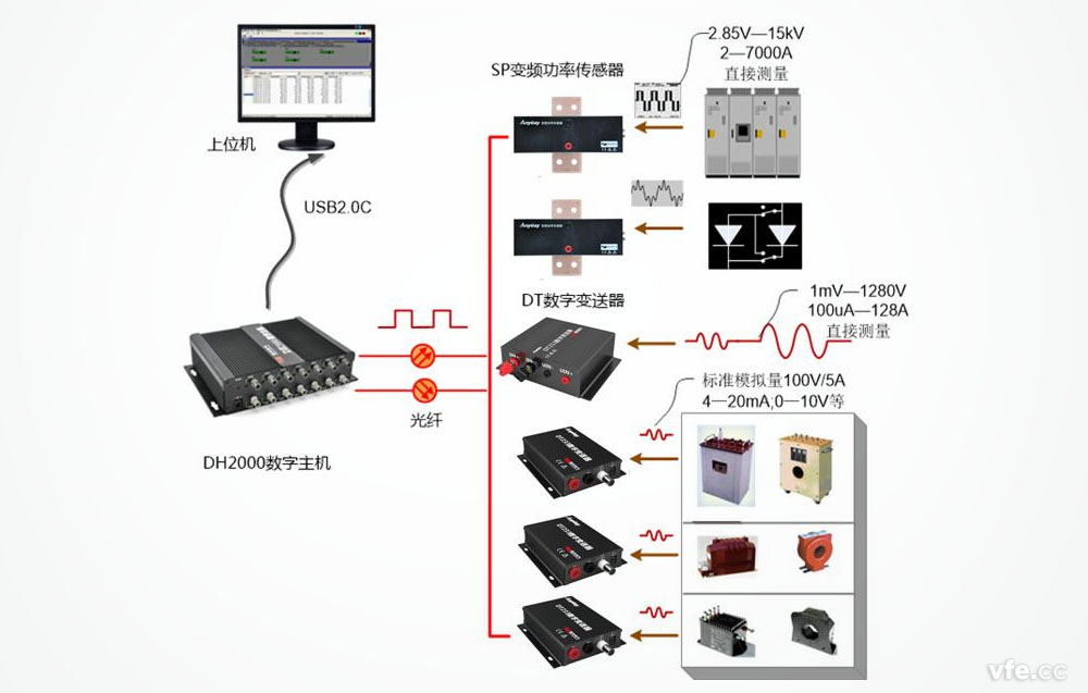 在SP系列變頻功率傳感器DT系列數字變送器內部將被測電量數字化,沒有信號傳輸環節的損失與干擾,并方便網絡化、智能化應用。同時光纖傳輸具有很強的抗干擾能力,在廣泛使用變頻器、整流器等強電磁輻射場合,系統準確度不會受傳輸線路及現場干擾的影響,安裝要求低,測量準確度高。