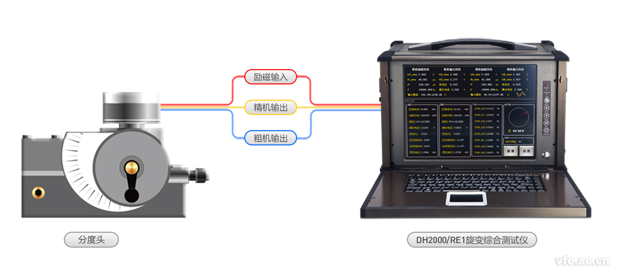 本儀器系統采用一臺正余弦旋轉變壓器綜合測試儀即可高效率實現標準規定的所有試驗,并可自動出具試驗報告和合格判定。(測試儀內置高精度勵磁電源,用戶無需另外選購)。