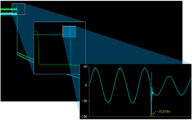 上位機提供數據回放與計算精準定位放大功能、游標計算功能、FIR數字濾波等功能,便于用戶進行數據的精準定位與分析,原始數據,纖毫畢現。